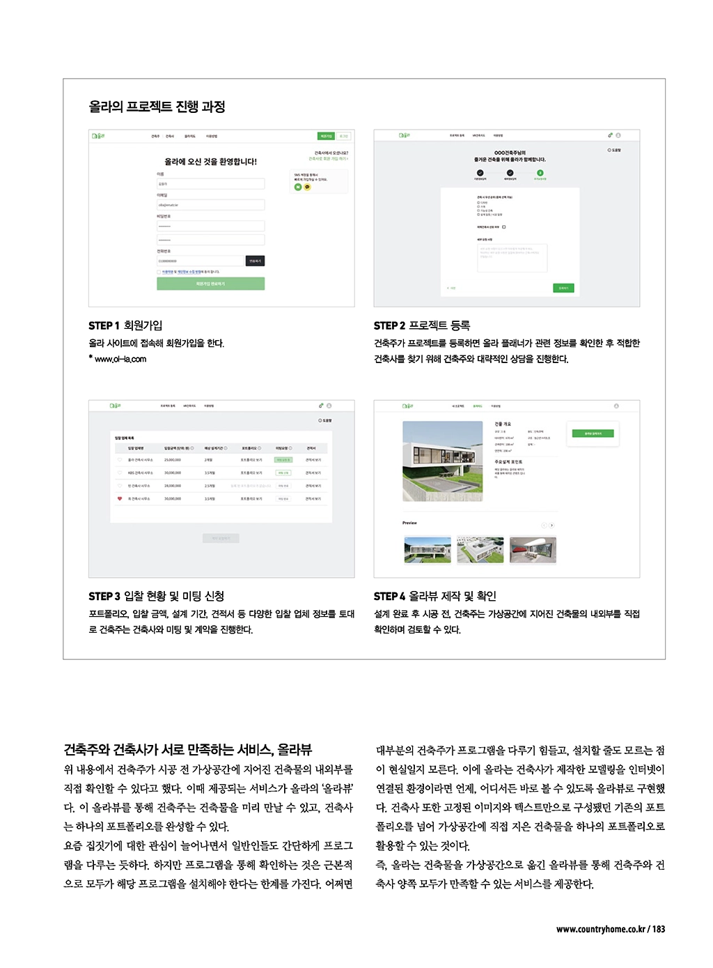 “올라” 서비스가 전원주택/단독주택 전문지 “전원주택라이프” 6월호에 소개되었습니다.